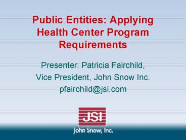 Public Entities: Applying Health Center Program Requirements PowerPoint PPT Presentation