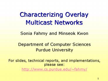<Notice: Removed> Characterizing Overlay Multicast Networks PowerPoint PPT Presentation