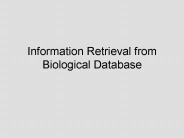 Information Retrieval from Biological Database PowerPoint PPT Presentation