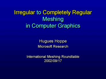 Title: Irregular to Completely Regular Meshing in Computer Graphics
