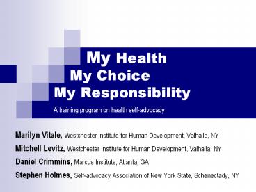Title: My Health My Choice My Responsibility A training program on health self-advocacy