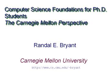 Computer Science Foundations for Ph.D.