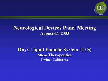 <Notice: Removed> Onyx Liquid Embolic System LES PowerPoint PPT Presentation