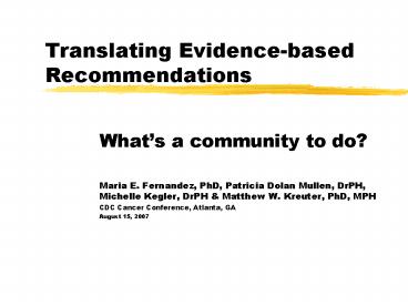 Title: Translating Evidencebased Recommendations
