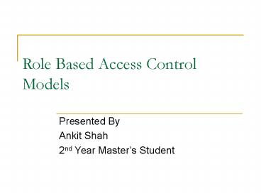 Role Based Access Control Models PowerPoint PPT Presentation