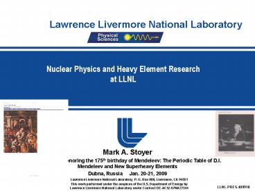 Title: Nuclear Physics and Heavy Element Research at LLNL