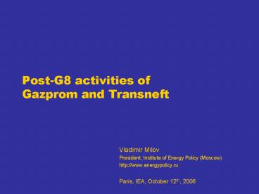 Title: PostG8 activities of Gazprom and Transneft