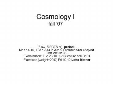 Cosmology I fall 07 PowerPoint PPT Presentation