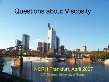 NCRH Frankfurt, April 2007 L.P. Csernai,