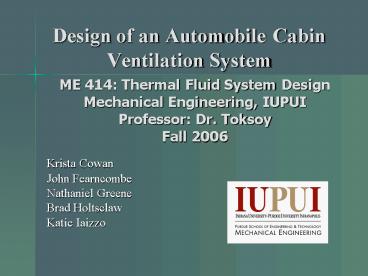 Design of an Automobile Cabin Ventilation System PowerPoint PPT Presentation