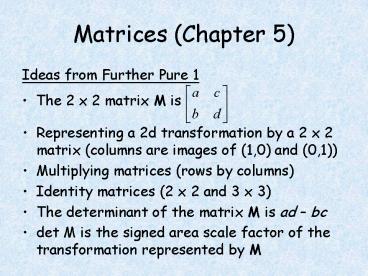 matrix (columns are images of (1,0) and (0,1)) - Multiplying matrices (rows by columns)