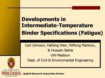 Title: Developments in IntermediateTemperature Binder Specifications Fatigue