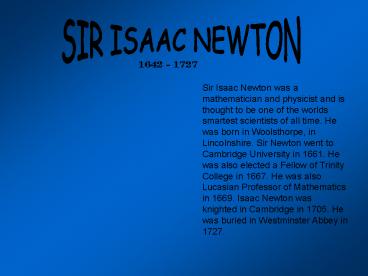 SIR ISAAC NEWTON PowerPoint PPT Presentation