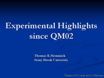 <Notice: Removed> Experimental Highlights since QM02 PowerPoint PPT Presentation