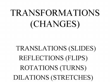 TRANSFORMATIONS CHANGES PowerPoint PPT Presentation