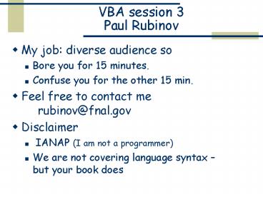 VBA session 3 Paul Rubinov PowerPoint PPT Presentation