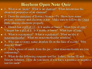 Biochem Open Note Quiz PowerPoint PPT Presentation