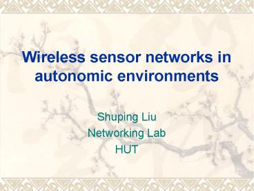 Title: Wireless sensor networks in autonomic environments