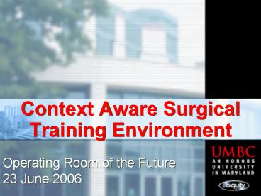 Context Aware Surgical Training Environment PowerPoint PPT Presentation