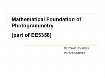 <Notice: Removed> Mathematical Foundation of Photogrammetry PowerPoint PPT Presentation