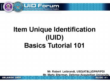 <Notice: Removed> Item Unique Identification IUID PowerPoint PPT Presentation