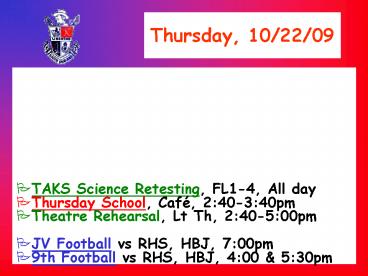 Thursday, 102209 PowerPoint PPT Presentation