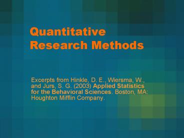 • Excerpts from Hinkle, D. E., Wiersma, W., and
