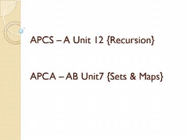 APCS A Unit 12 Recursion APCA AB Unit7 Sets PowerPoint PPT Presentation