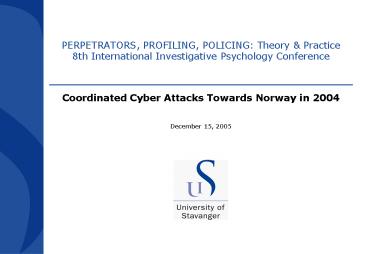 • Coordinated Cyber Attacks Towards Norway in 2004