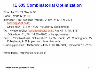 IE 635 Combinatorial Optimization PowerPoint PPT Presentation
