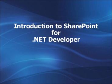 <Notice: Removed> Introduction to SharePoint for 'NET Developer PowerPoint PPT Presentation