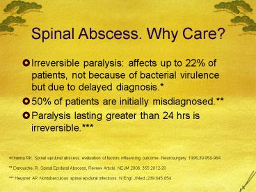 Title: Spinal Abscess. Why Care