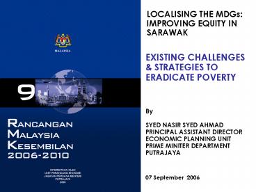 1LOCALISING THE MDGs IMPROVING EQUITY IN SARAWAK