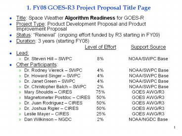Title: 1. FY08 GOES-R3 Project Proposal Title Page
