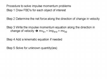 Procedure to solve impulse momentum problems PowerPoint PPT Presentation