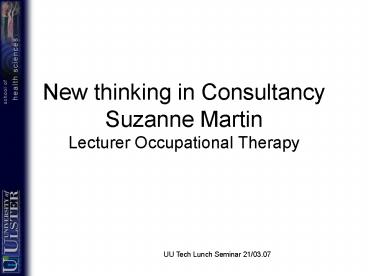 Title: New thinking in Consultancy Suzanne Martin Lecturer Occupational Therapy