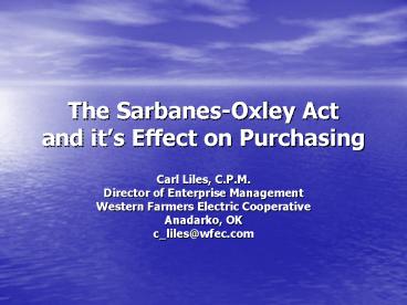 Title: The SarbanesOxley Act and its Effect on Purchasing