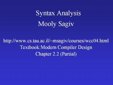<Notice: Removed> Syntax Analysis PowerPoint PPT Presentation