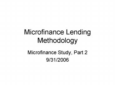 <Notice: Removed> Microfinance Lending Methodology PowerPoint PPT Presentation