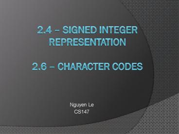 2'4 Signed integer representation 2'6 Character codes PowerPoint PPT Presentation