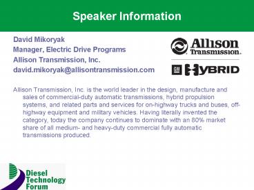 available to all responsible transit bus OEMs - The GM Allison EPSystemTM requires a full