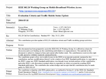 2802.20 Evaluation Criteria and Traffic Models