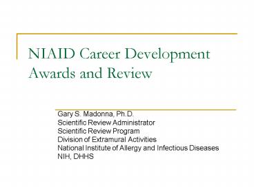 Title: NIAID Career Development Awards and Review