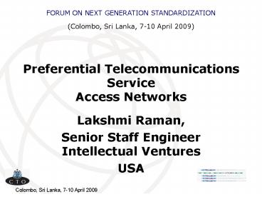 FORUM ON NEXT GENERATION STANDARDIZATION