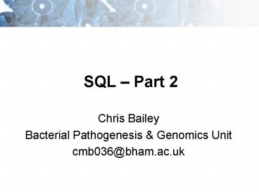SQL Part 2 PowerPoint PPT Presentation