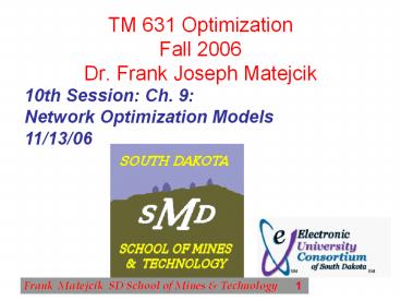 Title: TM 631 Optimization Fall 2006 Dr' Frank Joseph Matejcik