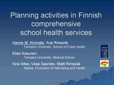 Planning activities in Finnish comprehensive school health services PowerPoint PPT Presentation