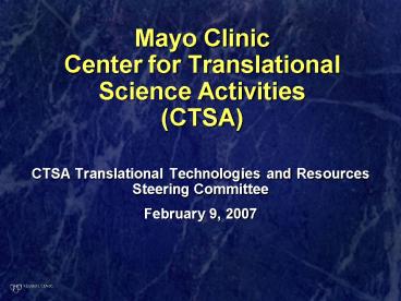 Title: Mayo Clinic Center for Translational Science Activities CTSA