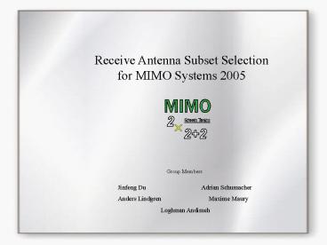 Title: Receive Antenna Subset Selection for MIMO Systems 2005