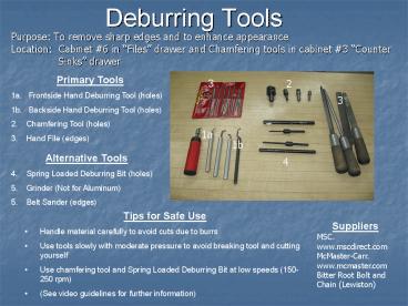 (holes) 2. Chamfering Tool (holes) 3. Hand